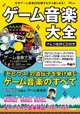 This book, of which the title translates to "Game Music Encyclopedia", includes a CD of game play music from 11 Namco games such as "Xevious", "Digdug", "Galaga", "Mappy", etc., plus a special original Namco medley by YMCK.
