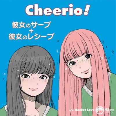 Girl vocal duo and "future tennis icons" Her Serves & Receive (Japanese name "kanojo no Serves & Receive"), whose first album "Service Ace" was recently released, has a first 7" coming this week. Included are "Cheerio!" (music written by Matsuo Muneyoshi (ex-Instant Cytron)) and "Racket Love" (produced by Indonesian city pop band Ikkubaru). Both are great songs, and they were mixed by Satō Seiki (microstar). The single has a two-sided jacket design.