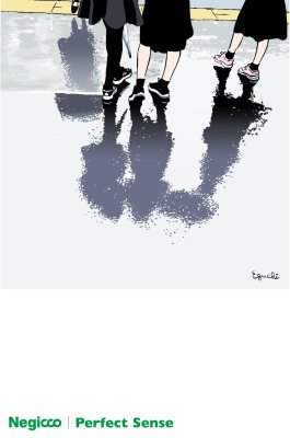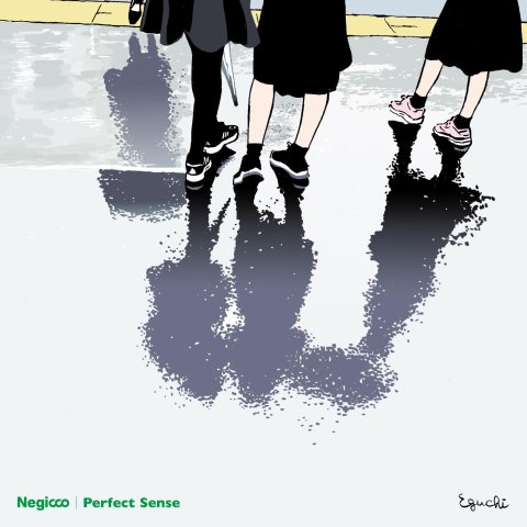 Negicco has released physical editions of their latest mini-album "Perfect Sense". There is a widely distributed CD edition, and also a 7" boxed set (3x7") and cassette editions which are available exclusively at their label's online shop (shipping internationally). The jacket has different artwork than the digital release, this time illustrated by Hisashi Eguchi.