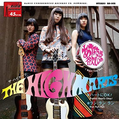 Neo-GS trio girl band The Highmarts (Facebook, Twitter) have a first 7" single out now! Produced by Sally Kubota (SOLEIL, ex-The Phantom Gift), it includes original song "I Want You Bad", and on the B-side are covers of The Phantom Gift's "Frantic Heart's Okay!" (Japanese title "Heart ni OK!") and The Gestures' "Run Run Run". The art direction & design is also by Sally Kubota.